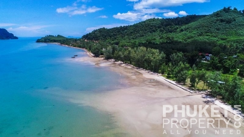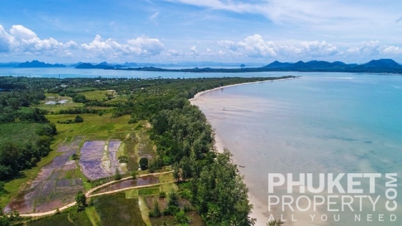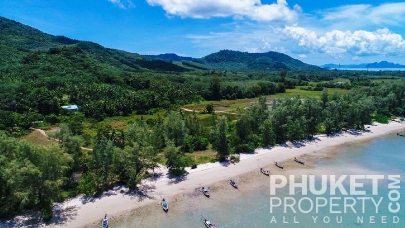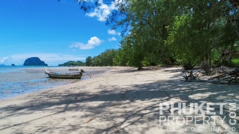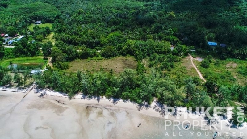 Stunning near regular shaped beachfront land plot of just over 9 rai, beach frontage with island views. Electricity is adjacent to the property, road access and water via well. Viewing with PhuketProperty.com.