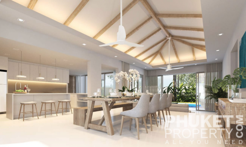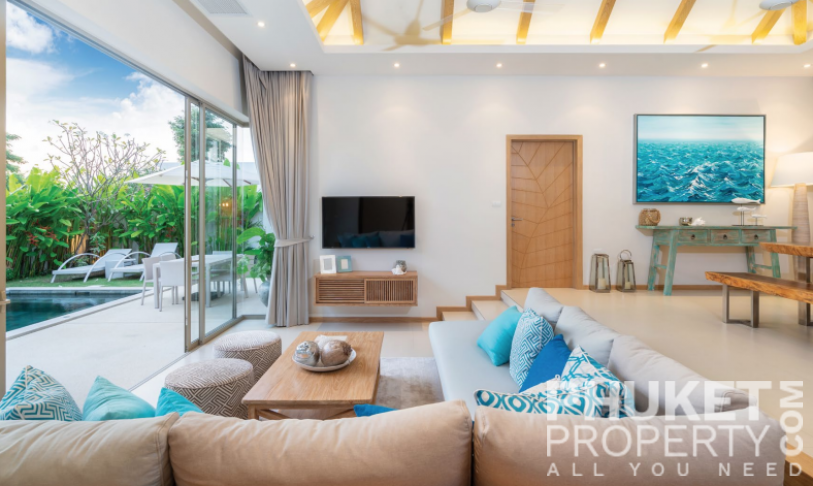 This 3 bed pool villa (Villa 9) for sale through PhuketProperty.com is set within a project of 21 villas located in Cherng Talay, close to Laguna and Layan in Phuket. If you're looking for a luxurious property investment in Phuket, look no further than these villas. This exclusive development offers the pinnacle of luxury living on the island, combining contemporary designs with traditional Thai elements. Located on the west coast of Phuket, this is a gated community of just 21 private villas, all designed to provide ultimate levels of privacy and exclusivity. Each villa features a private swimming pool and lush gardens. The villas themselves are designed with a modern, minimalist aesthetic. Each villa boasts floor-to-ceiling windows, allowing for plenty of natural light, while the interiors are thoughtfully crafted with luxurious finishes, high-quality appliances, and state-of-the-art technology. The villas range in size from 3 to 4 bedrooms, making them perfect for families or groups of friends looking for a tranquil, secluded getaway. The development's location also ensures that residents are never far from the best that Phuket has to offer. Beautiful beaches, world-class golf courses, and vibrant nightlife are just moments away. As a gated community this also provides unparalleled levels of safety and security, giving residents peace of mind at all times. The development offers 24-hour security, CCTV, and an onsite management team to ensure that residents' needs are met, including maintenance, gardening, and housekeeping. The villas offer an exceptional investment opportunity in Phuket, ensuring a lifestyle of tranquillity and luxury. Whether you're looking for a full-time residence or a vacation home, Trichada Azure is a unique opportunity to acquire a piece of paradise in one of the most sought-after destinations in the world. Don't miss your chance to be a part of this community. Contact us today to learn more about this exquisite development and how you can secure your perfect villa. Please contact us directly at PhuketProperty.com, Phuket property agents since 1998, for more information or to view this 3 bed pool villa for sale in Cherng Talay, Phuket.