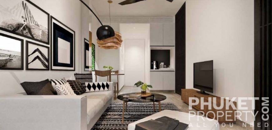 This studio condo for sale through PhuketProperty.com is located within a new resort and close to the beach in Kamala, Phuket. The development comprises 75 condominium units - 56 one bedroom and 19 two units - for sale. The project will span some 15,000m2 of mountain and beachfront land on Phuket’s sunset west coast at Kamala, that has been carefully developed to include private luxury estates and oceanside apartments, upscale hospitality, lifestyle retail and wellness offerings. The site offers almost 250 m of beach frontage shaded by mature Casuarina trees. Please contact us directly at PhuketProperty.com, Phuket real estate agents since 1998, for more information or to view this studio condominium for sale close to the beach in Kamala, Phuket.