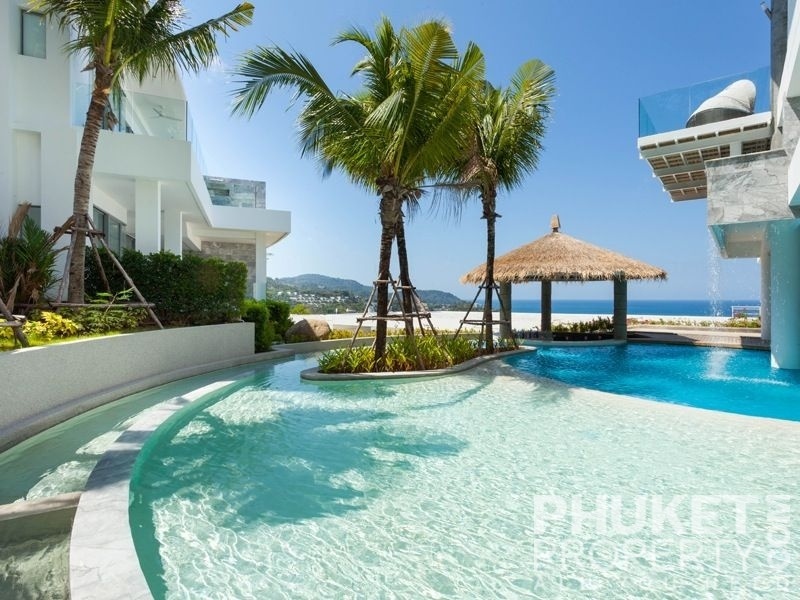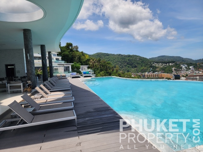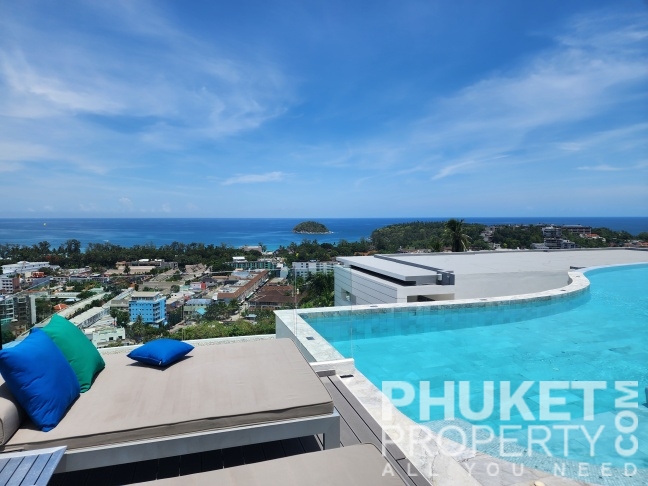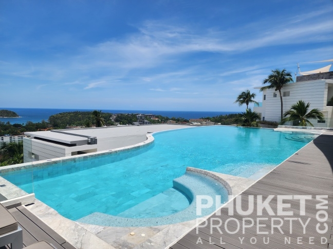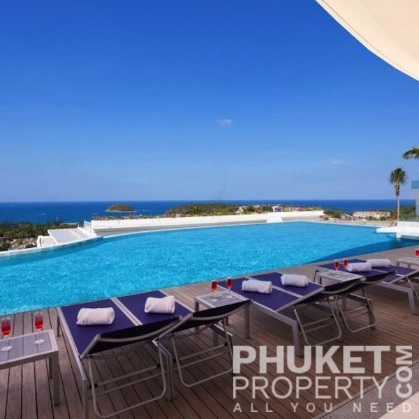 An exclusive luxury low density development of just 53 units designed for discerning buyers that appreciate the difference between a product that simply offers a superb "view”. The Architects of this project have drawn inspiration from nature to produce a simple yet stunning building form that is modeled on the shape and mass of ocean waves. The cleverly arranged tiers of units and blocks represent the graceful curve of a wave and its continual evolution from base to crest. This project is located on a private elevated position overlooking the cosmopolitan beach district of Kata on the prestigious sunset coast; just 45 minutes drive south of Phuket International airport. The facilities put everything at your fingertips. The common area is 5,000 Sqm with a tropical garden overlooking the sea. There is a full service clubhouse. A sun deck with freeform pool and infinity lap pool. A kid's pool and play ground. There is a fitness center with sauna. A common area staff service. A 24 hour on site security team with CCTV on site. There is also a rental service and maid service in place. This project also has deluxe sized Penthouse with 392 sq meters of living space, plus 281 sq meters of rooftop deck. To view this modern seaview luxury 3 bedroom condo for sale in Kata, Phuket, or for further information, please contact PhuketProperty.com, Phuket luxury estate agents since 1998.