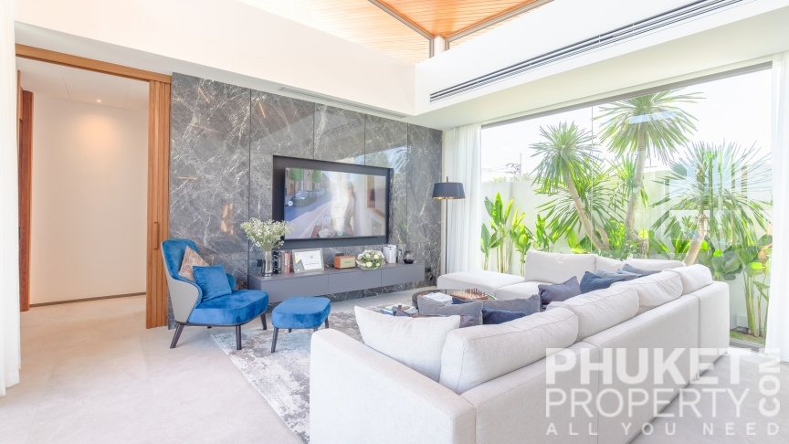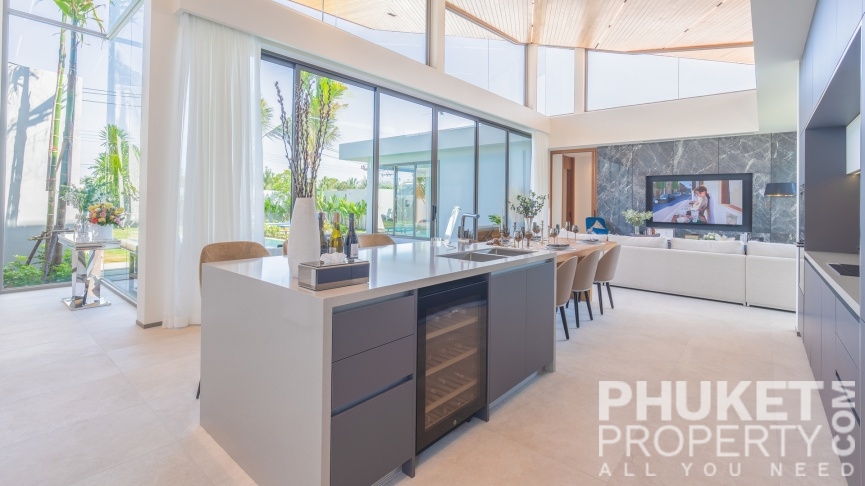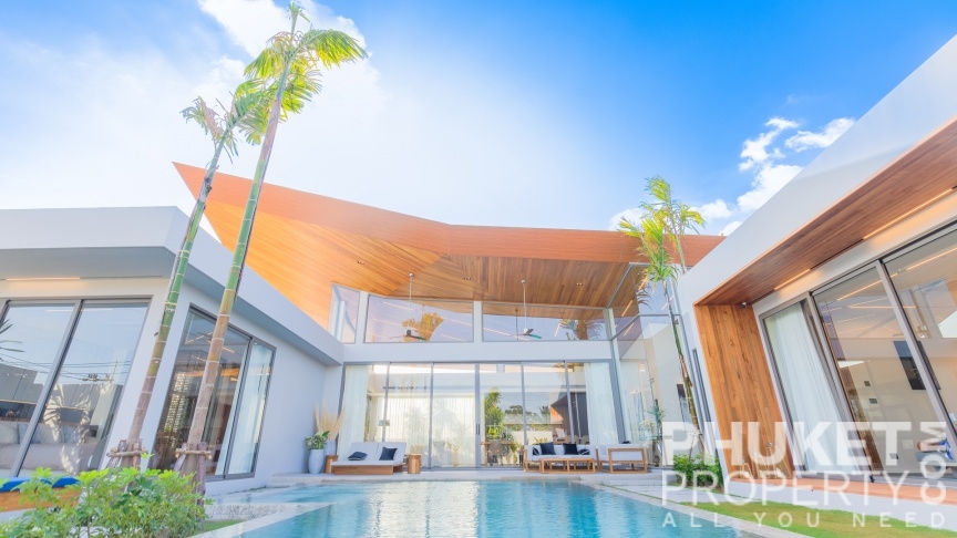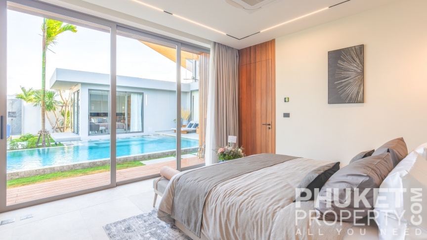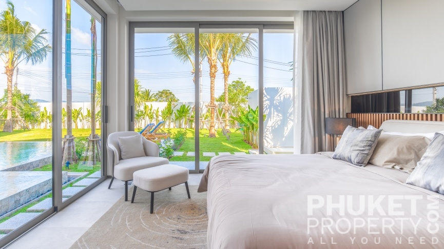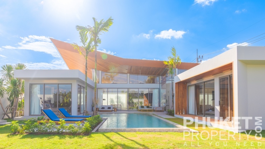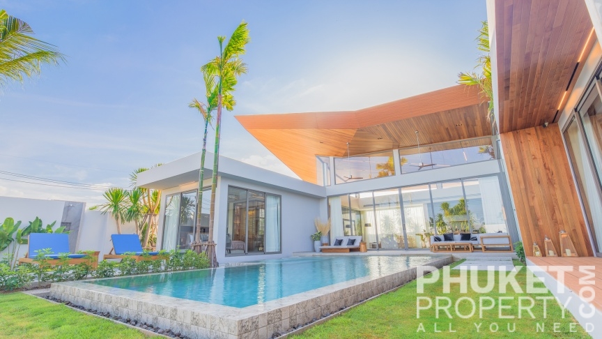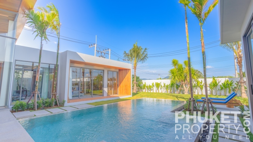 This 3+1 bed luxury pool villa is for sale through PhuketProperty.com and is located in a quiet area of Pasak in Cherng Talay, Phuket. The project has just 9 limited edition villas with 3 and 4 bedroom formats. Located close to Layan Beach and the main areas of Boat Avenue and Laguna with golf access. The villas are of a contemporary tropical style with high ceilings and ample glass. This villa is a spacious 3 bedroom format. Please contact us directly at PhuketProperty.com, Phuket luxury property agents since 1998, for more information or to view this 3+1 bed luxury pool villa for sale near Laguna, Phuket.