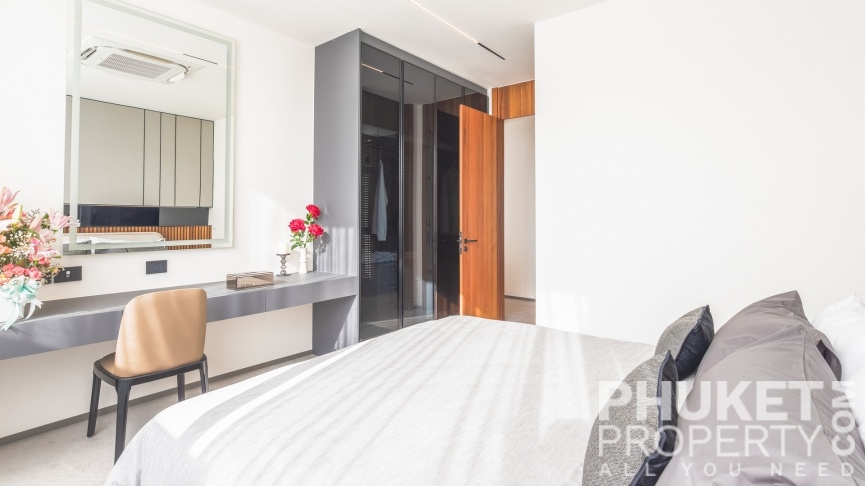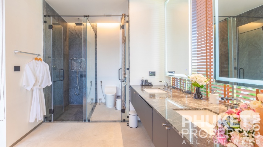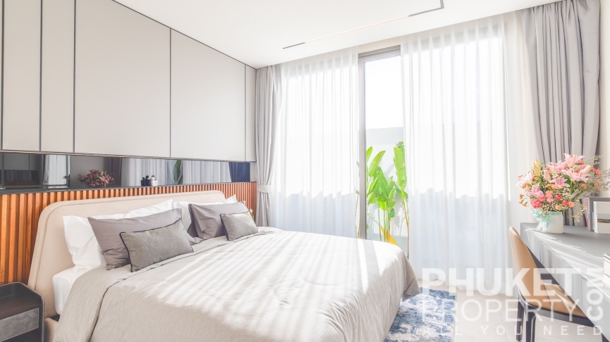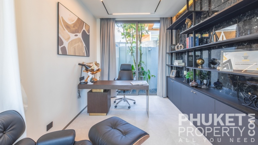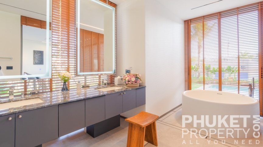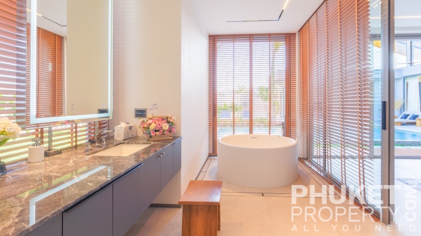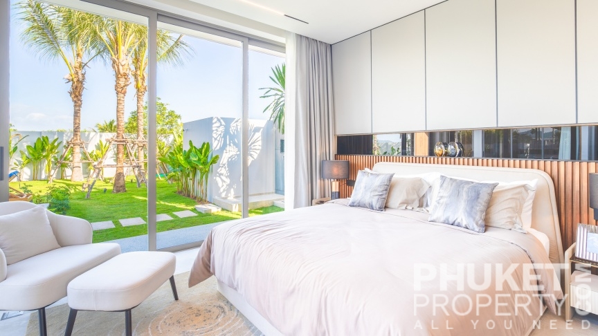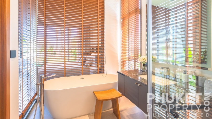 This 3+1 bed luxury pool villa is for sale through PhuketProperty.com and is located in a quiet area of Pasak in Cherng Talay, Phuket. The project has just 9 limited edition villas with 3 and 4 bedroom formats. Located close to Layan Beach and the main areas of Boat Avenue and Laguna with golf access. The villas are of a contemporary tropical style with high ceilings and ample glass. This villa is a spacious 3 bedroom format. Please contact us directly at PhuketProperty.com, Phuket luxury property agents since 1998, for more information or to view this 3+1 bed luxury pool villa for sale near Laguna, Phuket.