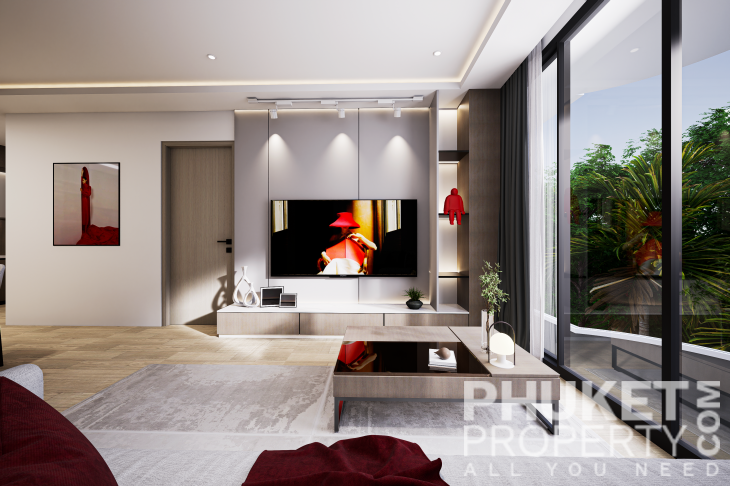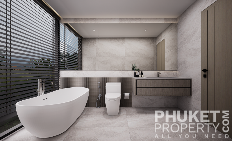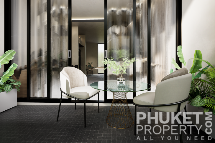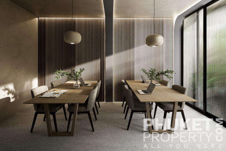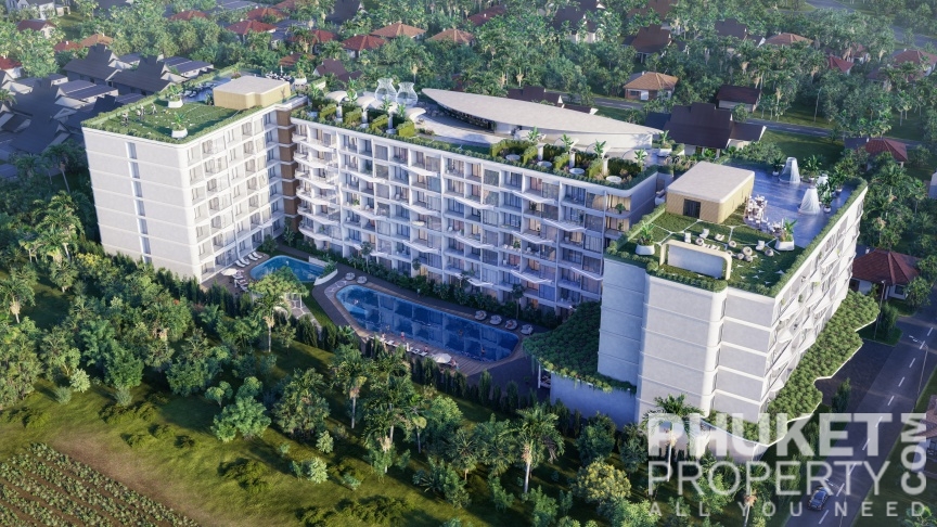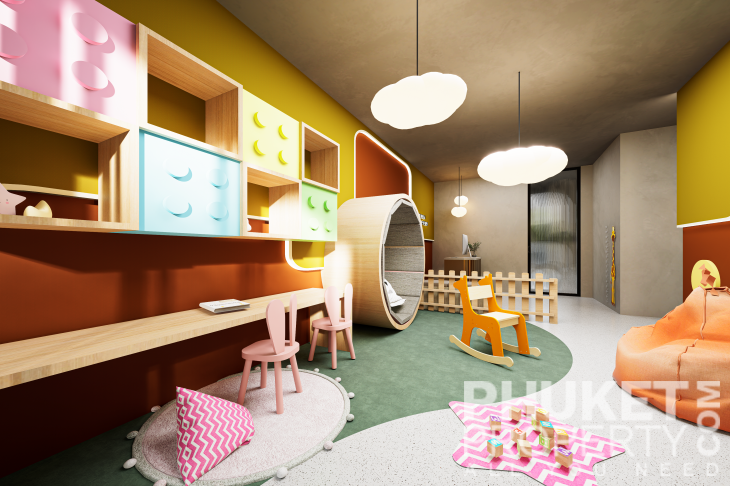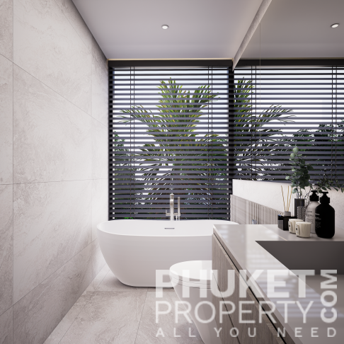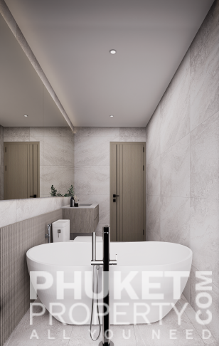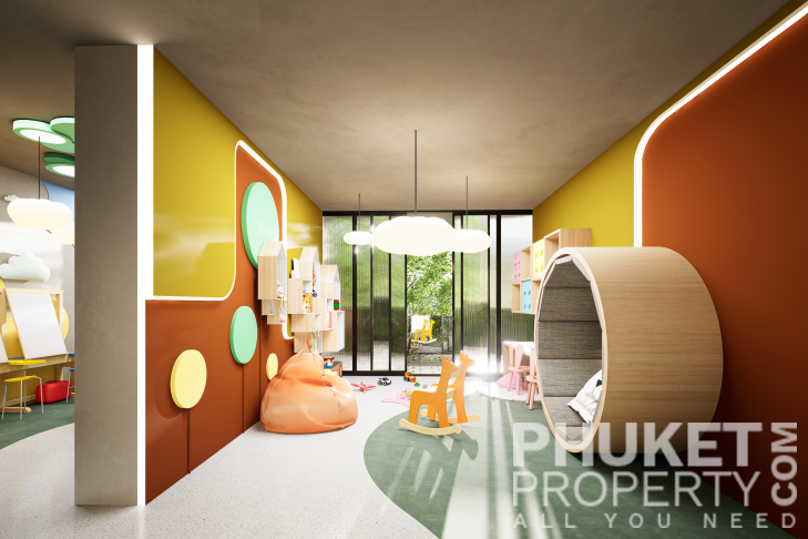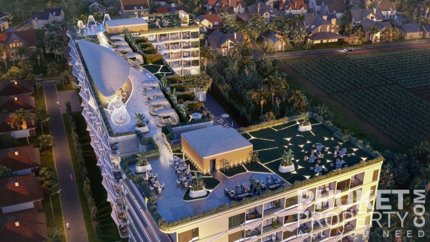 A standout feature is the unique rooftop relaxation area, an exclusive space that includes a stylish bar, an outdoor cinema, and private gazebos with jacuzzis for ultimate relaxation. The complex also boasts a spacious 32x10-meter main pool, complete with loungers and sun umbrellas, perfect for enjoying a refreshing break. For younger guests, there is a dedicated children's pool, measuring 12x8 meters, conveniently located next to the kids' club. The lush surroundings are beautifully landscaped with tropical shrubs, palm trees, and vibrant greenery, creating a tranquil and inviting atmosphere. Contact PhuketProperty.com today your trusted Phuket real estate agents since 1998 for more information or to schedule a viewing this 3 bedroom elegant luxury condo for sale in Rawai, Phuket.