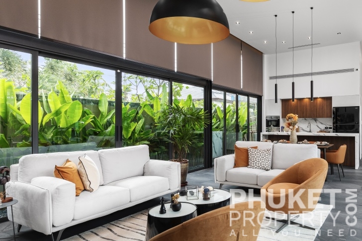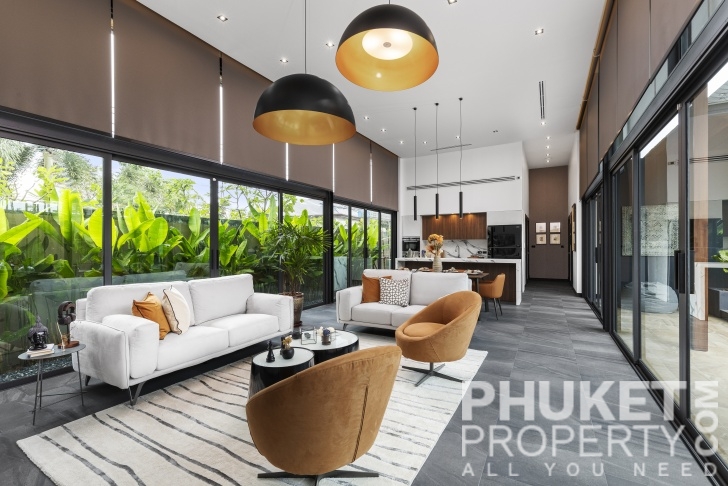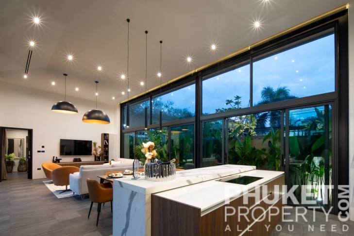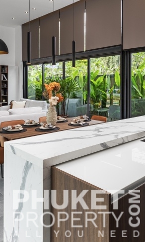 This 4 bedroom tropical modern villa is located in Rawai,and is sale through PhuketProperty.com. The Villa is born from a simple desire to strip away the superfluous, embracing natural order, calm, and tranquility. A few essential, yet magical, elements harmonize with the tropical environment, allowing for a serene living experience. Expansive windows and abundant glass blur the boundaries between interior and nature, letting you fully immerse in the surrounding landscape. The swimming pool flows seamlessly between the pavilions, its shimmering reflections extending across the sun-drenched deck and interiors. The garden, regardless of its size, is a year-round showcase of exotic plants and lush foliage.
