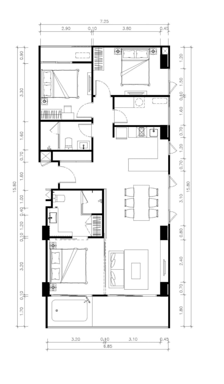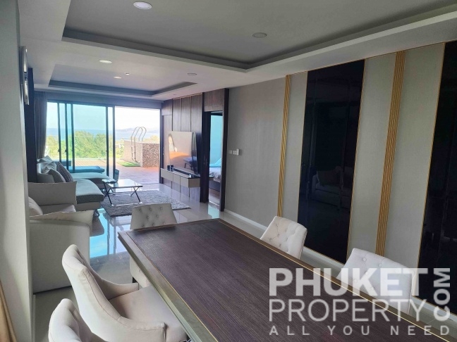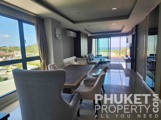There is a video available for this unit in the video/drone tab. A floor plan is also available. This 3 bed freehold condo with plunge pool has great sea views and is available for sale through PhuketProperty.com. The unit is in perfect condition with 167m2 of internal space and a large terrace space. The master bedroom is a large with an ensuite and opens onto the terrace. Two further bedrooms are both doubles and share a bathroom. There is a large storage room for personal effects. The resort offers a superb pool area, bars, restaurant, gym and covered parking. Contact us at PhuketProperty.com, Phuket real estate agents since 1995, for further information or to arrange a viewing of the ocean view 3 bed condo for sale in Surin, Phuket.