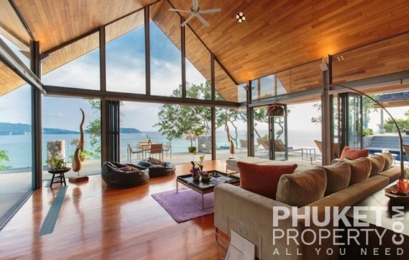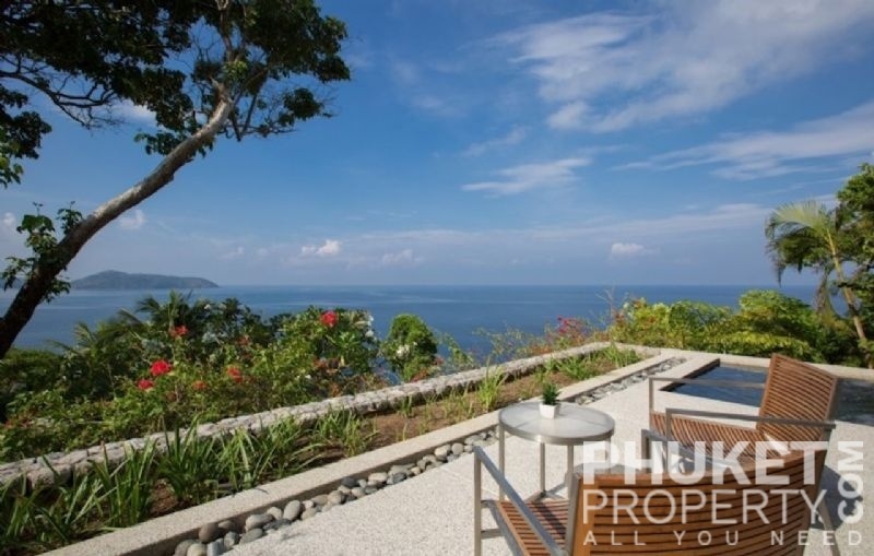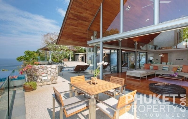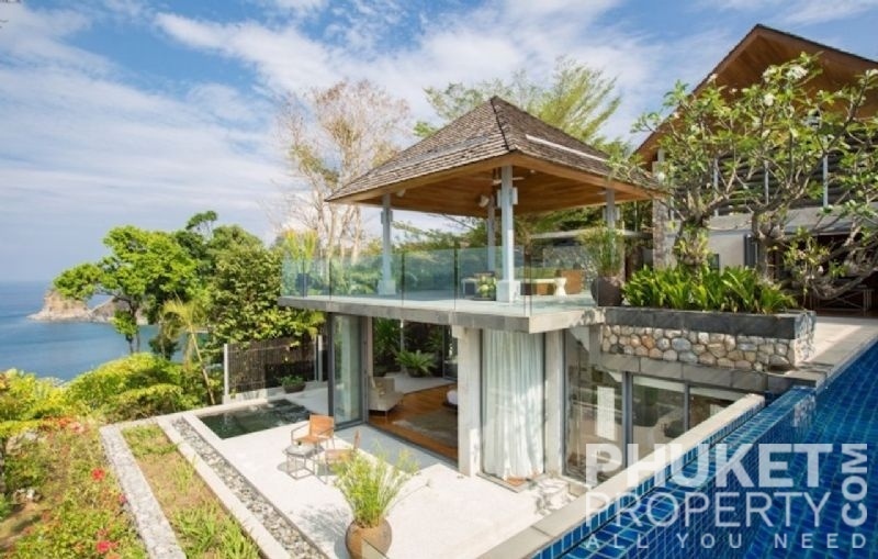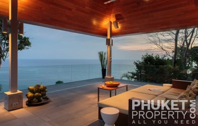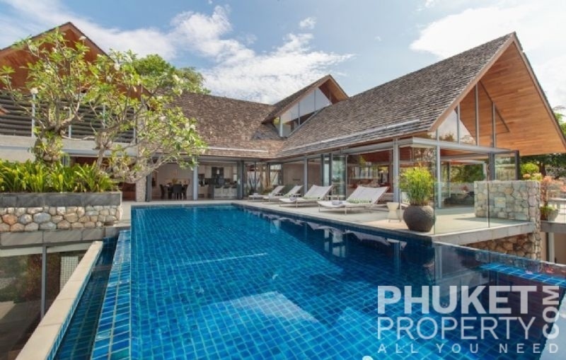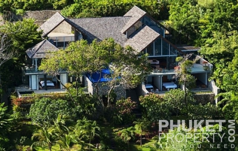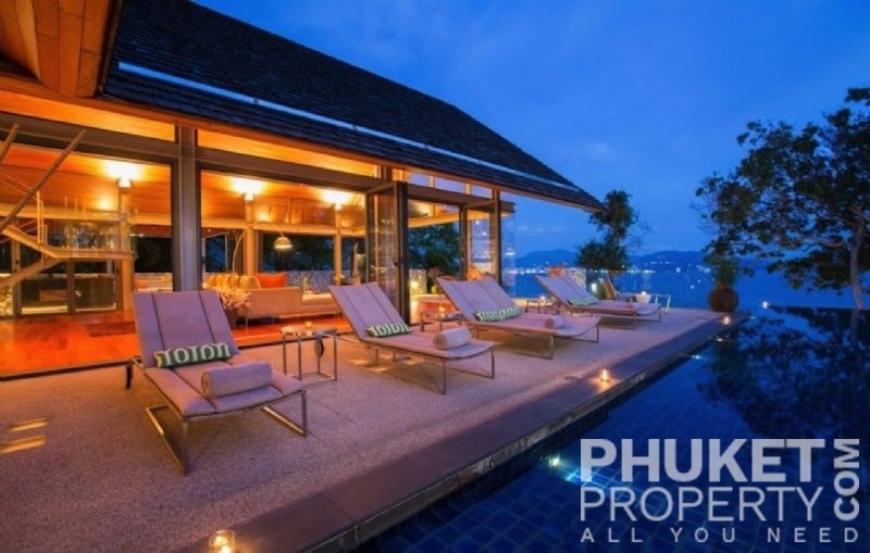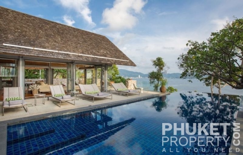 This luxury villa for sale is perhaps Phuket's most rounded, west coast luxury oceanfront villa in the US$5m segment. Direct ocean facing with a 4,000 Sq.m garden laid to lawn and access to the ocean in addition to the actual 1,000+ Sq.m villa plot. The villa affords open ocean, Patong Bay and Patong Beach views with both sunrise and sunset persepectives. Contemporary Asian by architects, Original Vision conceived two main levels and integrated these designd for family living. The result is a light and modern living space with high cathedral ceiling. Currently configured as 4 bedrooms plus an ocean view office and large media room with yoga studio, the property can be converted to up to 6 bedrooms. The master bedroom suite has it's own outdoor sea view jacuzzi and a second outdoor bath and each guest bedroom has it's own terrace space. There are three ensuites, two bedrooms share a bathroom and the 6th bedroom (now converted to a media room, has a bathroom design which will be fitted if required). The living room has 6m high vaulted golden teak line ceilings and all around floor to ceiling high quality bi-fold anodised aluminium doors. Thus the whole area and front of the villa can be opened up tto allow direct terrace access. The 2nd, lower living area is great for TV, Games, children etc. Plenty of sun bed area around the 15m infinity edge swimming pool. Outdoor barbecue and dining area large enough for 20 person seating with 270 degree ocean and bay views There are extensive staff quarters at the rear of the villa of over 100 Sq,m. These include a 2nd full western kitchen, staff bedrooms and common area, large laundry. The entire staff quarters access the main villa levels through their own private doorways so keep guest privacy to a maximum. Tthis is probably the only West coast oceanfront villa with a such a large usable garden space between the ocean and the villa. Over 4,000 Sq.m of combined lawns, trees and oceanfront. Perfect for events, relaxing and children to play. The Villa estate is wonderfully positioned on it's own headland overlooking the open ocean, Patong Bay and Patong Beach. It is private and secure and yet only 7 minutes drive to down town Patong and 12 minutes drive to Surin Beach. There is direct walking access to Nakalay and Blue Coral Beaches from internal estate pathways. The estate has the most complete infrastructure of any Residential only estate in Phuket. It has it's own one million litre water storage facility, two generators and fire hydrant system. There is a dedicated management office from which villas and the estate are maintained and rentals can be arranged. This villa has probably the best location within the estate, the largest and most usable oceanfront garden anywhere along the entire west coast. It is a modern, functional and well maintained. Viewing by appointment only. Priced at US$ 6.0 million. Please contact us directly at PhuketProperty.com for more information or to view this luxury villa for sale in Kamala, Phuket.