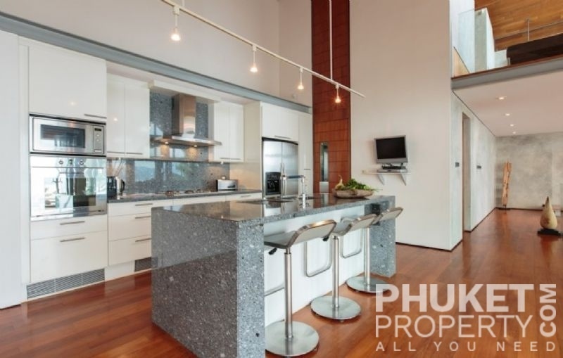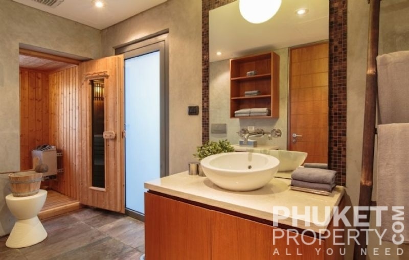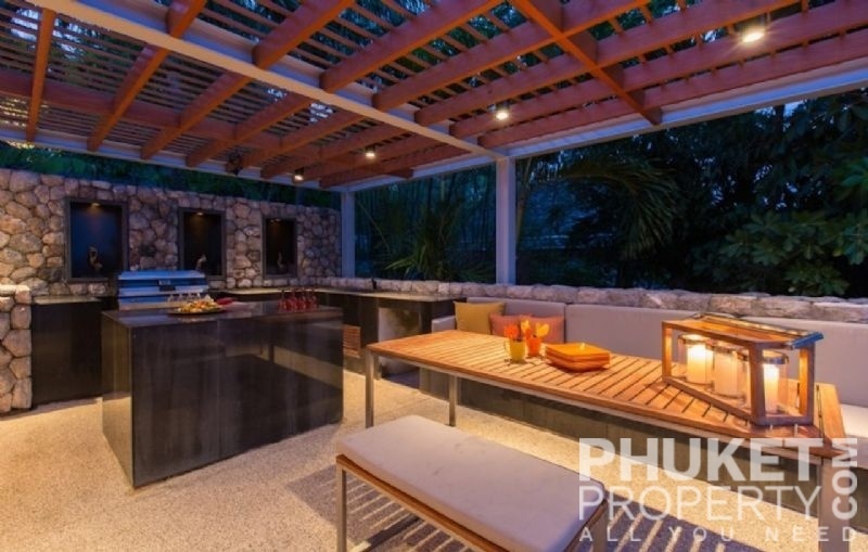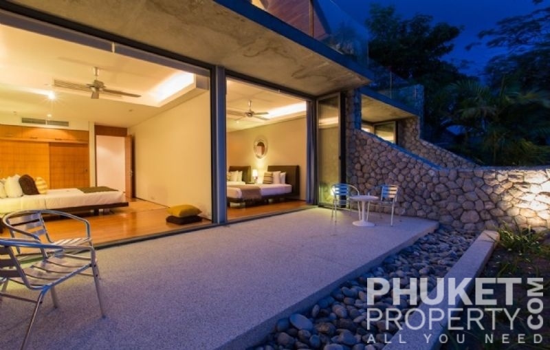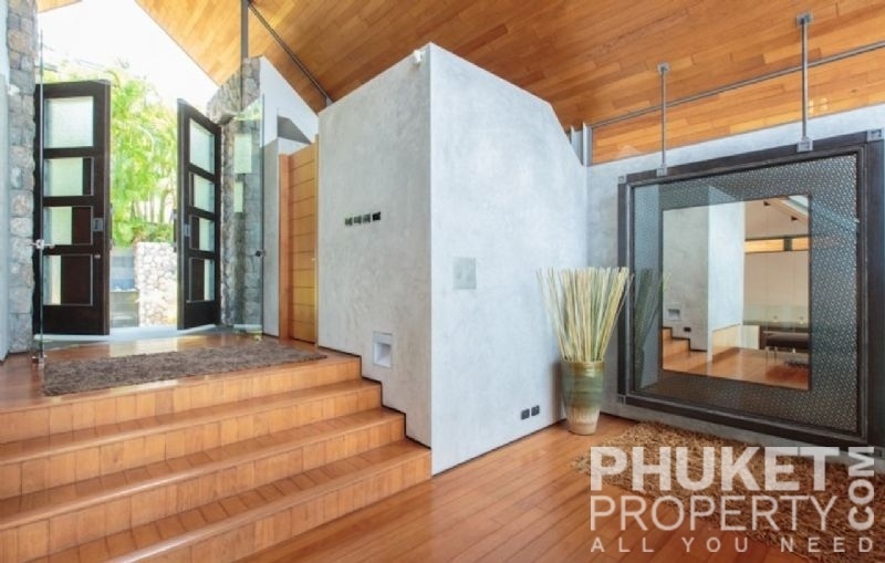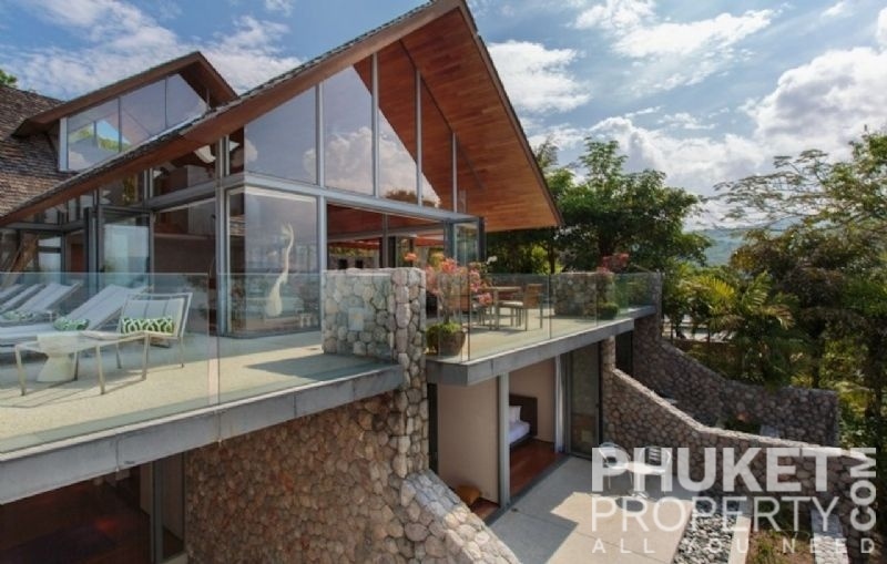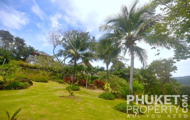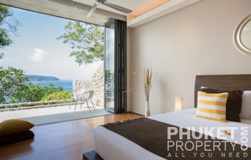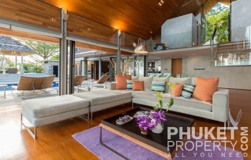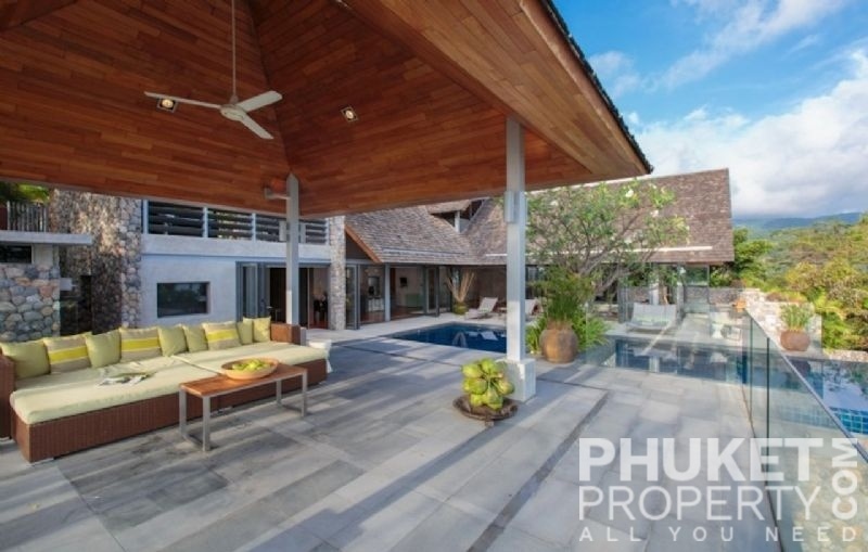 This luxury villa for sale is perhaps Phuket's most rounded, west coast luxury oceanfront villa in the US$5m segment. Direct ocean facing with a 4,000 Sq.m garden laid to lawn and access to the ocean in addition to the actual 1,000+ Sq.m villa plot. The villa affords open ocean, Patong Bay and Patong Beach views with both sunrise and sunset persepectives. Contemporary Asian by architects, Original Vision conceived two main levels and integrated these designd for family living. The result is a light and modern living space with high cathedral ceiling. Currently configured as 4 bedrooms plus an ocean view office and large media room with yoga studio, the property can be converted to up to 6 bedrooms. The master bedroom suite has it's own outdoor sea view jacuzzi and a second outdoor bath and each guest bedroom has it's own terrace space. There are three ensuites, two bedrooms share a bathroom and the 6th bedroom (now converted to a media room, has a bathroom design which will be fitted if required). The living room has 6m high vaulted golden teak line ceilings and all around floor to ceiling high quality bi-fold anodised aluminium doors. Thus the whole area and front of the villa can be opened up tto allow direct terrace access. The 2nd, lower living area is great for TV, Games, children etc. Plenty of sun bed area around the 15m infinity edge swimming pool. Outdoor barbecue and dining area large enough for 20 person seating with 270 degree ocean and bay views There are extensive staff quarters at the rear of the villa of over 100 Sq,m. These include a 2nd full western kitchen, staff bedrooms and common area, large laundry. The entire staff quarters access the main villa levels through their own private doorways so keep guest privacy to a maximum. Tthis is probably the only West coast oceanfront villa with a such a large usable garden space between the ocean and the villa. Over 4,000 Sq.m of combined lawns, trees and oceanfront. Perfect for events, relaxing and children to play. The Villa estate is wonderfully positioned on it's own headland overlooking the open ocean, Patong Bay and Patong Beach. It is private and secure and yet only 7 minutes drive to down town Patong and 12 minutes drive to Surin Beach. There is direct walking access to Nakalay and Blue Coral Beaches from internal estate pathways. The estate has the most complete infrastructure of any Residential only estate in Phuket. It has it's own one million litre water storage facility, two generators and fire hydrant system. There is a dedicated management office from which villas and the estate are maintained and rentals can be arranged. This villa has probably the best location within the estate, the largest and most usable oceanfront garden anywhere along the entire west coast. It is a modern, functional and well maintained. Viewing by appointment only. Priced at US$ 6.0 million. Please contact us directly at PhuketProperty.com for more information or to view this luxury villa for sale in Kamala, Phuket.