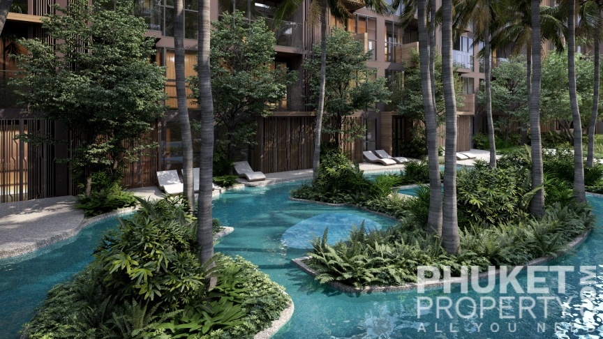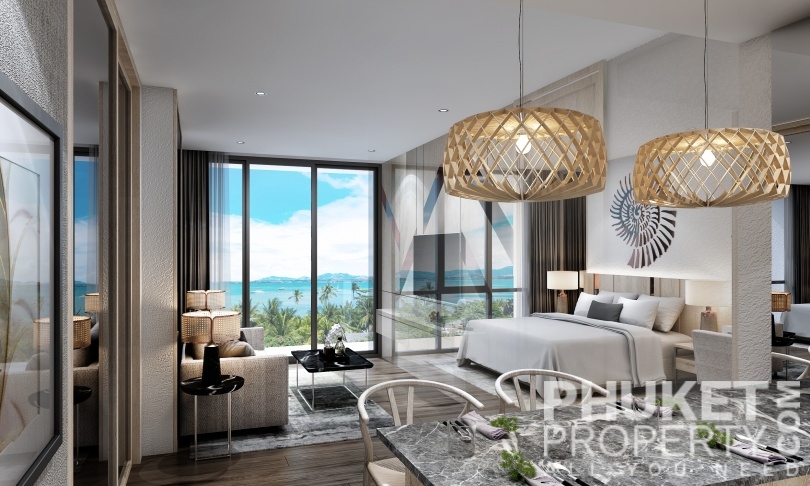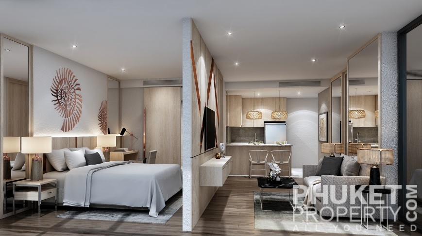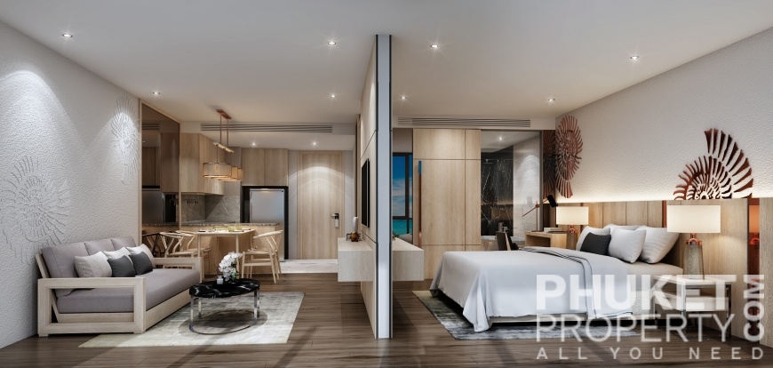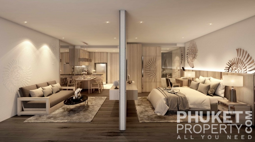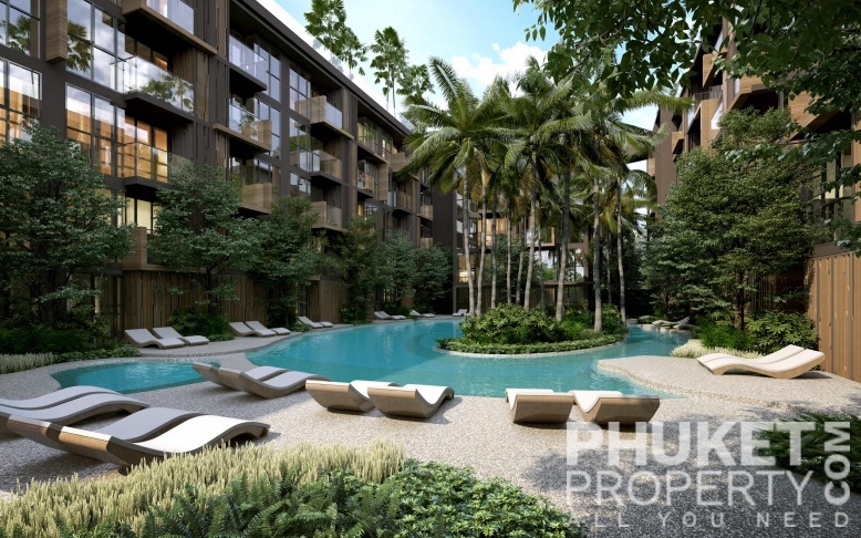 The studio garden view condo for sale is located in Kamala, Phuket and is just 200 meters from Kamala beach and the resident beach clubs and hotels. The village of Kamala with supermarket, restaurants and shops is within easy reach as is the popular Surin beach. The development is a full service resort community with 4 swimming pools, large and modern designed lobby, restaurant, fitness, kids club and a panoramic roof-deck with bar and swimming pool. The photographs shown represent a mix of all units and are not representative of any specific unit. Please contact us directly at PhuketProperty.com for more information or to view this 2 bed garden view apartment for sale, close to Kamala beach, Kamala, Phuket.