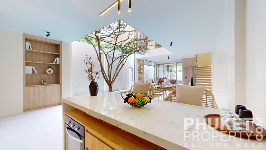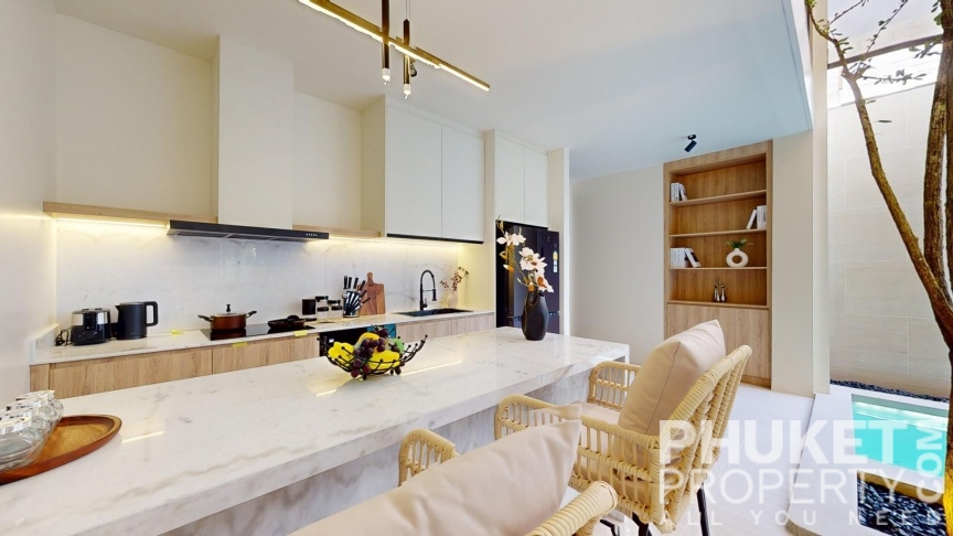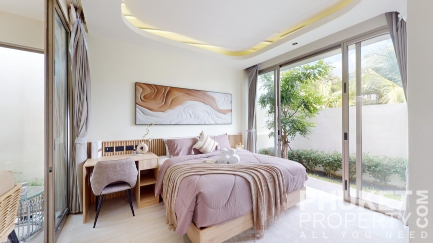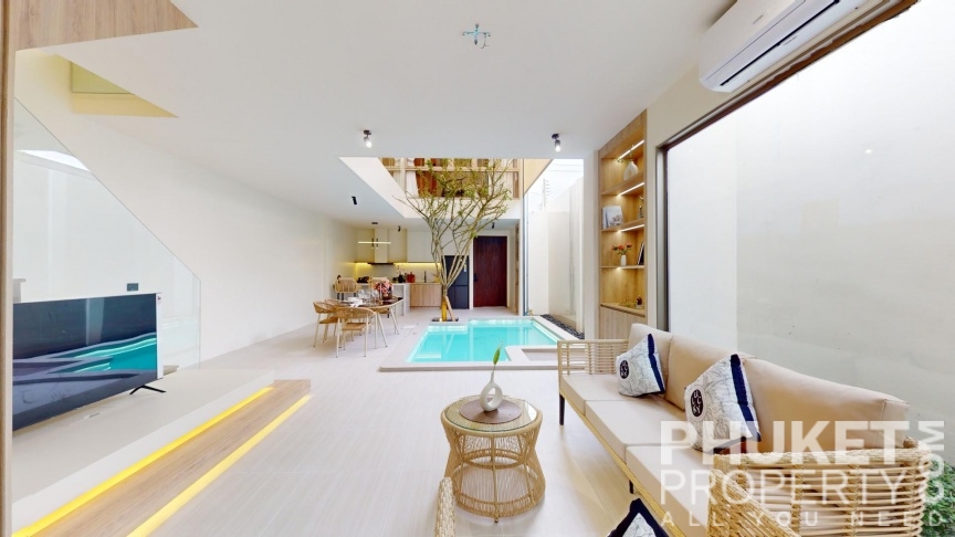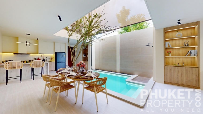 This modern 3-bedroom luxury pool villas located in Srisoonthorn, Thalang and is sale through PhuketProperty.com. Nestled in a lush, forested area near the Heroines Monument, the villas offer a unique blend of contemporary design and practical living. The layout centers around an intimate family pool area connected to an open-plan living space. Each villa includes 3 spacious bedrooms with en-suite bathrooms, a modern kitchen, and private parking. The development also features a children’s play area, creating a perfect environment for families. The location is peaceful and removed from heavy traffic, yet conveniently close to essential amenities such as the airport, restaurants, and the new Robinson shopping center. Marinas and international schools are just an 18-minute drive away. These villas provide excellent value and have promising rental potential. For more information or to arrange a viewing, please contact PhuketProperty.com, your trusted real estate experts in Phuket since 1998.
