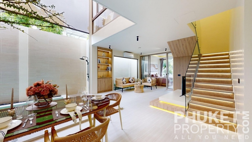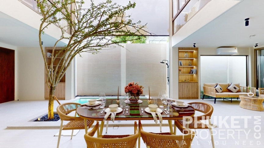 This modern 3-bedroom luxury pool villas located in Srisoonthorn, Thalang and is sale through PhuketProperty.com. Nestled in a lush, forested area near the Heroines Monument, the villas offer a unique blend of contemporary design and practical living. The layout centers around an intimate family pool area connected to an open-plan living space. Each villa includes 3 spacious bedrooms with en-suite bathrooms, a modern kitchen, and private parking. The development also features a children’s play area, creating a perfect environment for families. The location is peaceful and removed from heavy traffic, yet conveniently close to essential amenities such as the airport, restaurants, and the new Robinson shopping center. Marinas and international schools are just an 18-minute drive away. These villas provide excellent value and have promising rental potential. For more information or to arrange a viewing, please contact PhuketProperty.com, your trusted real estate experts in Phuket since 1998.