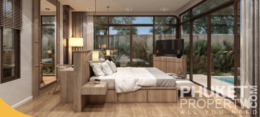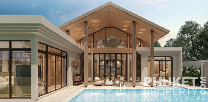 This luxurious 3 bedroom villa, available for sale through Phuketproperty.com, is nestled in Thalang and serves as a perfect private holiday retreat, blending elegance with cozy comfort. Set within an exclusive community of 18 uniquely designed modern tropical villas, each offering 3-4 bedrooms and private pools, the development spans over 5 Rai (8,000 sqm.) and provides spacious living areas starting from 341.5 sqm. Ideally located in a new luxury residential enclave, it offers convenient access to Bangtao and Layan Beach, surrounded by an elite neighborhood and lush natural beauty.